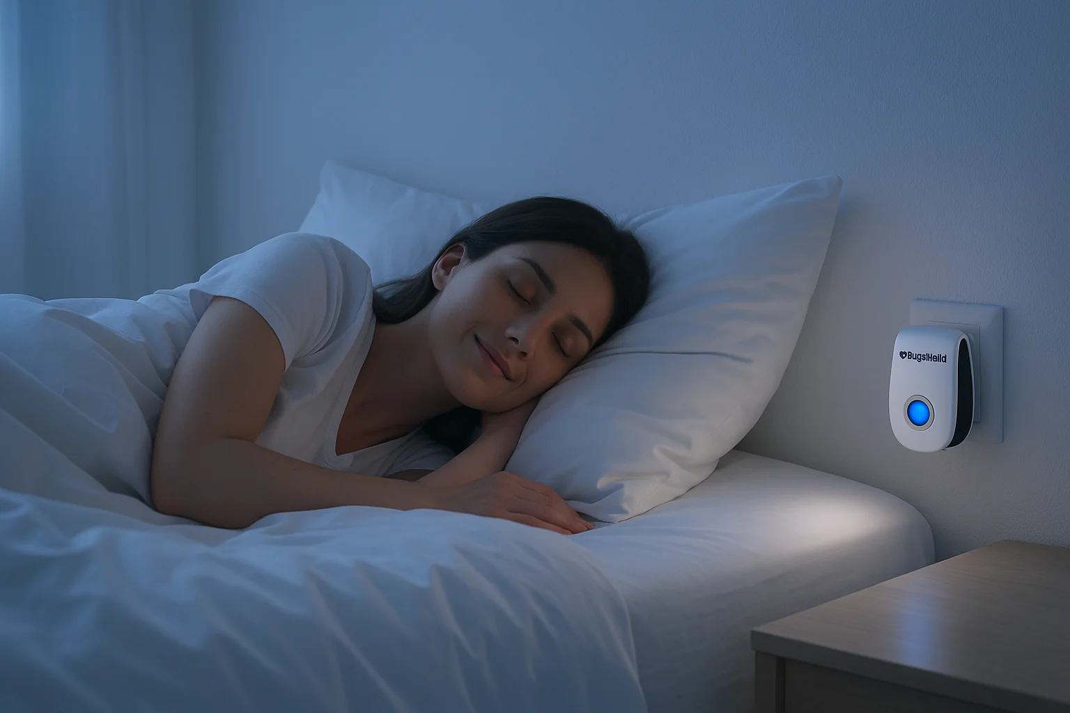 Ja, BugShield ist geräuschlos und lichtfrei, daher perfekt für den Einsatz während des Schlafs geeignet.